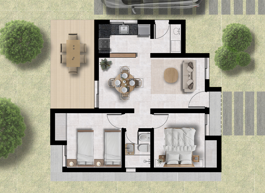 Cero 58 es una vivienda versátil que combina funcionalidad y un plus de espacio. Ideal para familias en crecimiento.